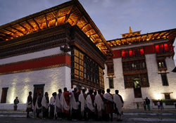 不丹實行君主制的時間并不長,1907年,烏堅?旺秋(UgyenWangchuck)被不丹各地首領推選為國王,廢除了不丹的政教合一系統,不丹重新成為了獨立的統一國家。第三任國王晉美?多吉?旺秋被稱為不丹現代化之父,他設立了國會,并且讓不丹加入了聯合國,為了紀念他,不丹首都廷布建立了一個大白塔。每天都有很多人在這里轉塔祈禱。